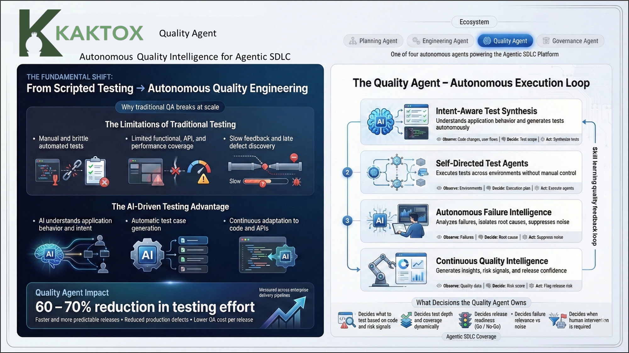 Who Benefits: QA, SDET, and Engineering teams accelerate testing cycles through AI-driven test creation and execution, improving coverage and quality while significantly reducing manual scripting effort