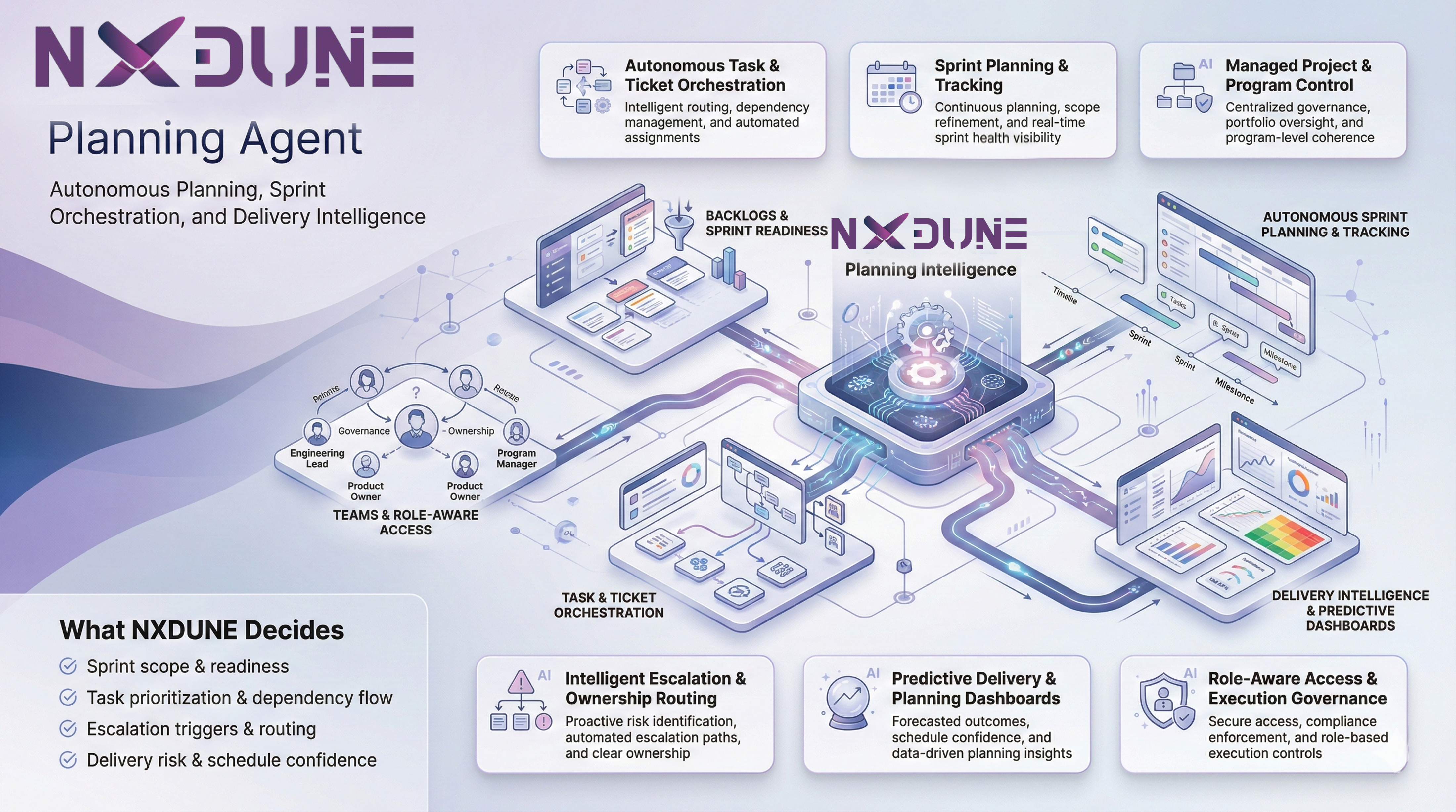 NXDUNE - Central execution hub for project management, user stories, tasks, ticketing, workforce, bugs, approvals, lifecycle governance.