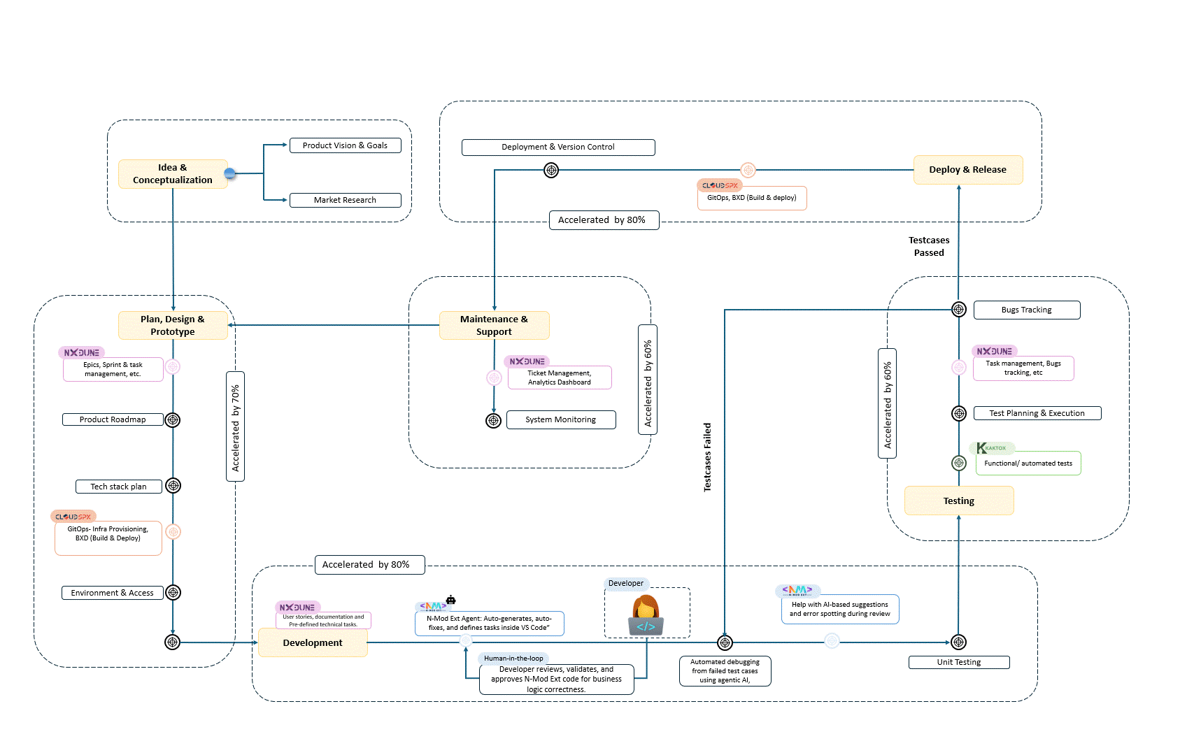 Our product ecosystem brings Agentic SDLC to life by seamlessly orchestrating AI-driven capabilities across every phase of the software development lifecycle.